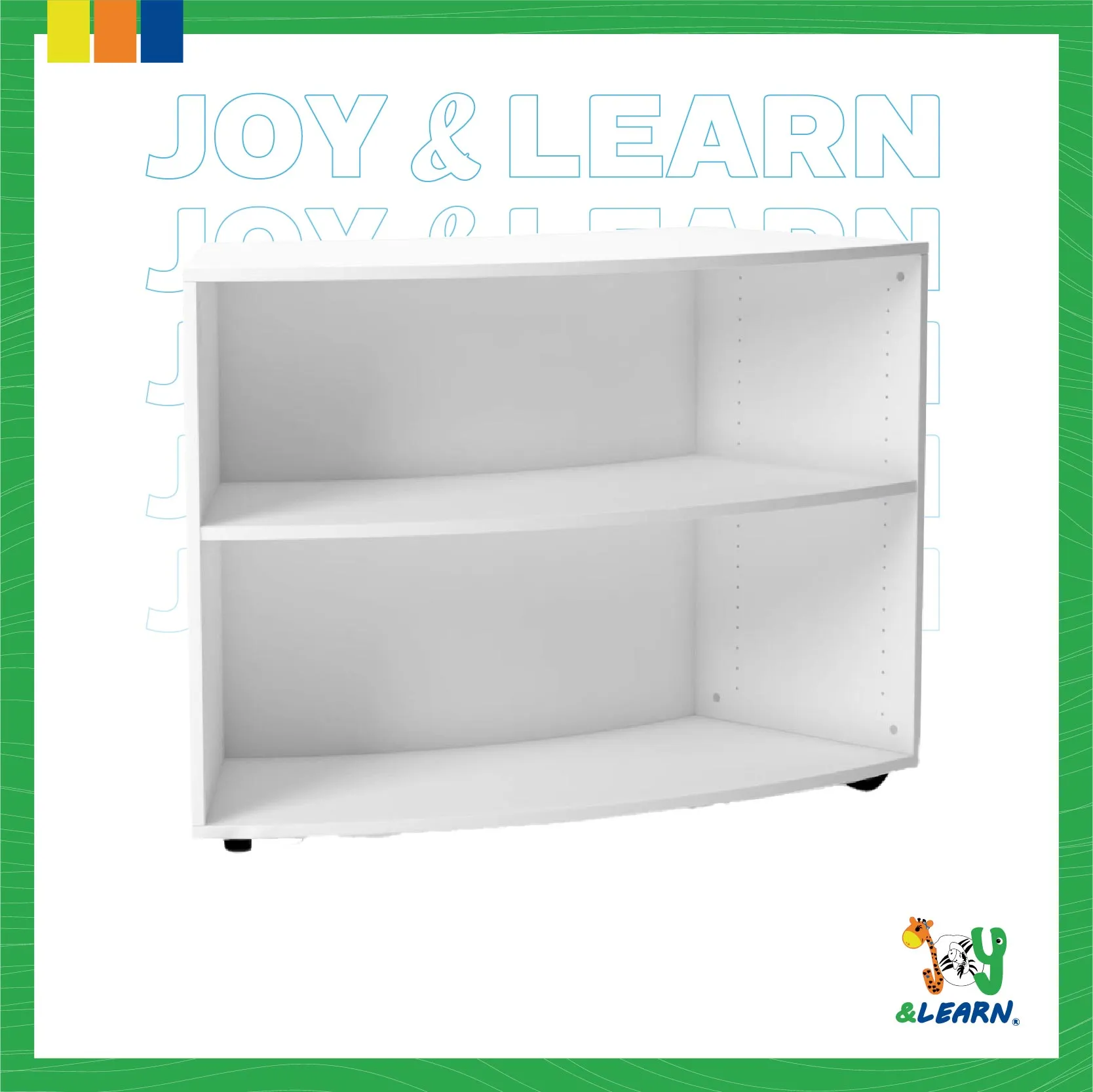 Curved open library with shelves 80 cm suitable for equipping preschool, kindergartens, and children’s classrooms. You can use it to store children’s supplies and keep your facility clean…