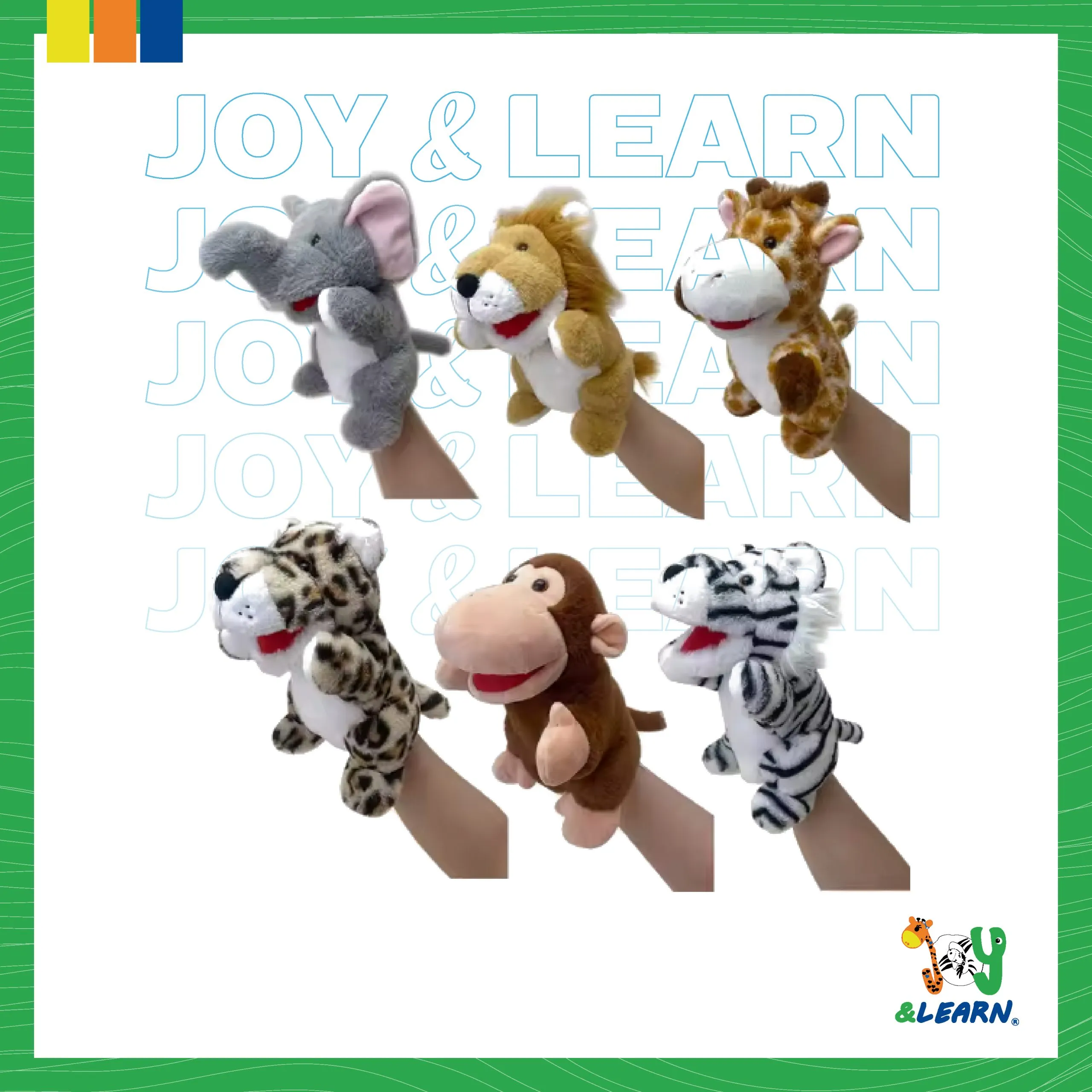 hand puppets, set of 6 different designs,Made from soft, plush, washable fabric
