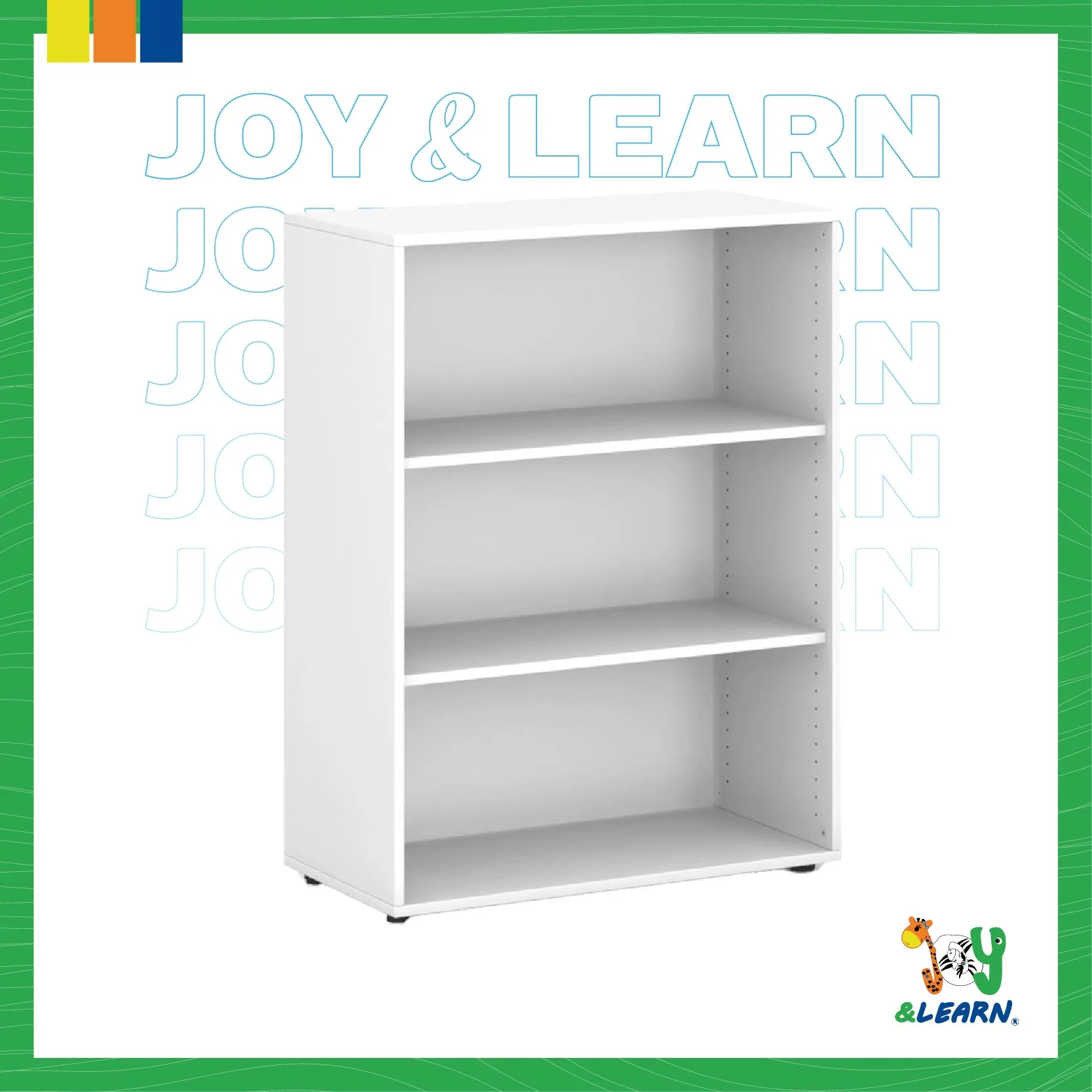 Modern bookshelf with 2 shelves (120 cm) suitable for equipping preschool, kindergartens, and children’s classrooms. You can use it to store children’s supplies and keep your facility clean…