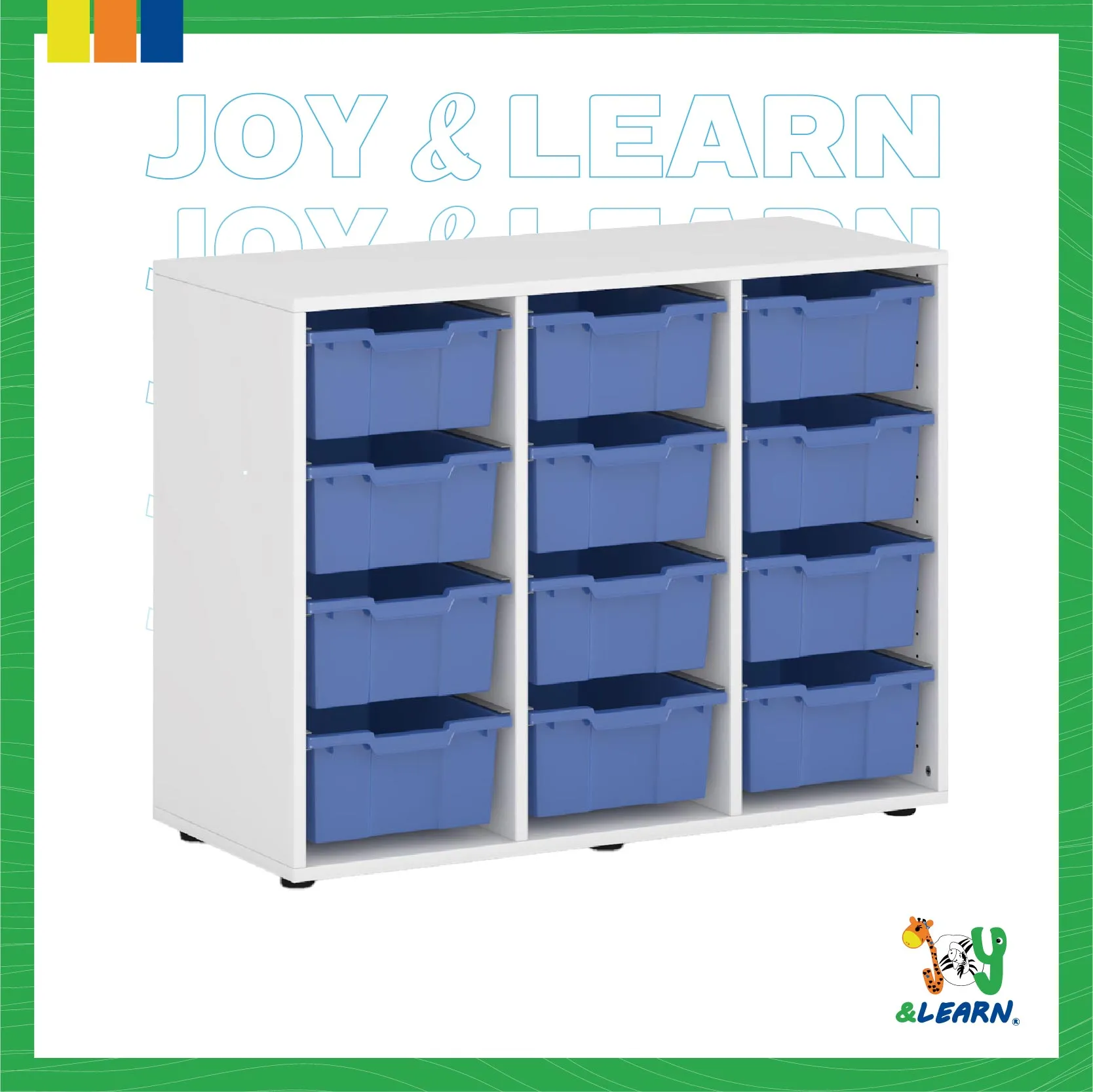 Open bookshelves with 12 drawers suitable for equipping preschool, kindergartens, and children’s classrooms. You can use it to store children’s supplies and keep your facility clean…