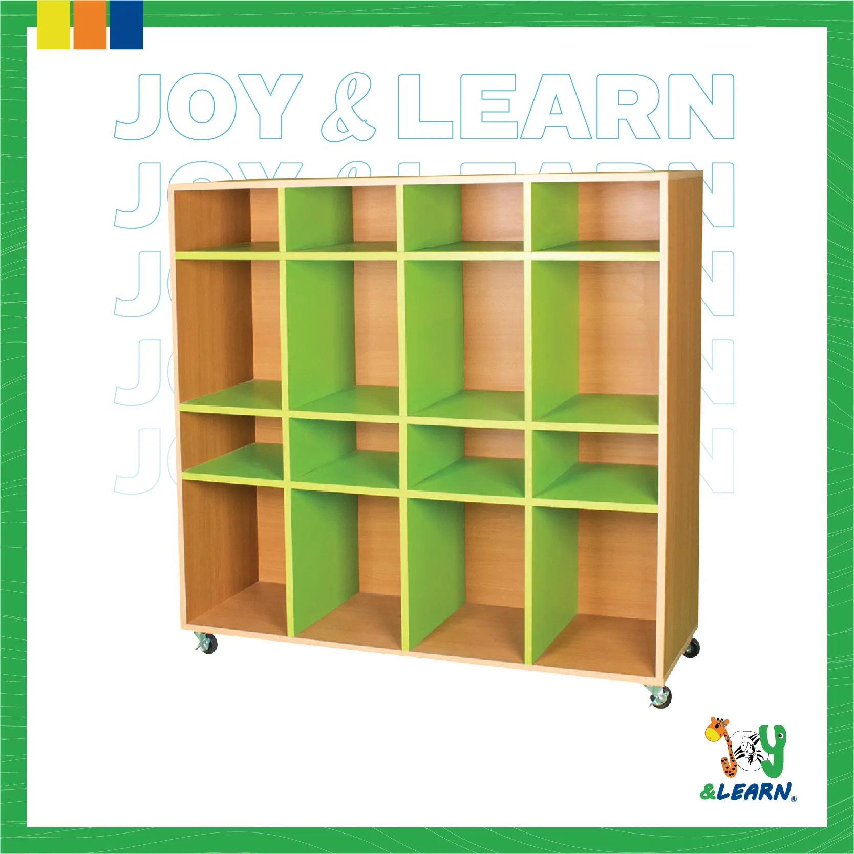 An open library with 16 slots. A multi-use library that is indispensable in any preschool, school or home…