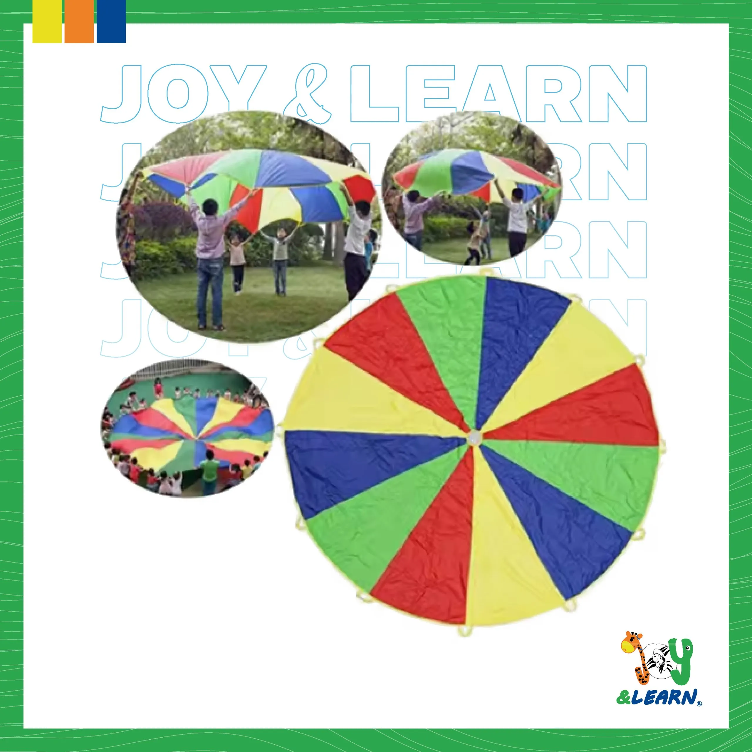 Play umbrella with 12 handles suitable