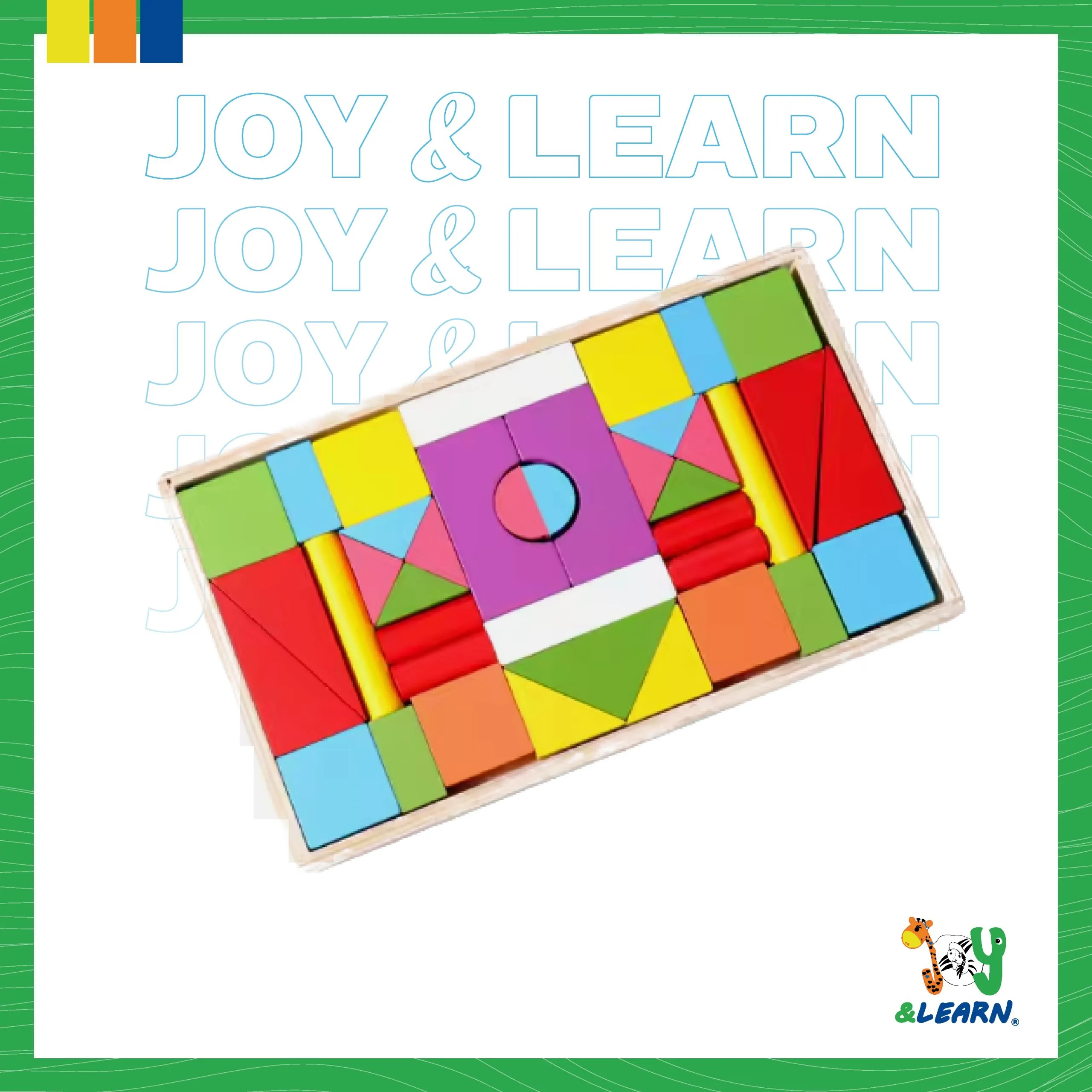مجموعة مكونة من 50 قطعة بناء مصنوعة من الخشب،بمختلف الألوان والأشكال والأحجام الزاهية